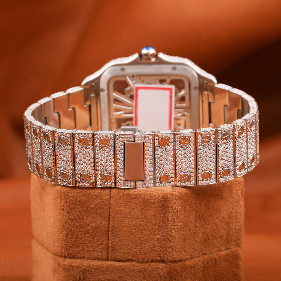 Luxury Fashion Antique Custom Iced Skeleton Diamond Digital Roman Numeral Stainless Steel Glass Men's Skeleton Wristwatch