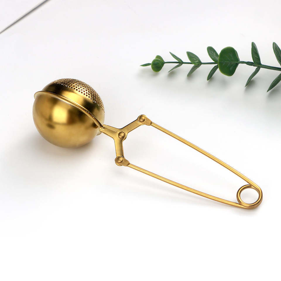 ที่กรองชาทองเหลืองสลักลายหรูหรา พร้อมช้อนกรองชาใบแบบพรีเมียม ดีไซน์แบบมีรูพรุน ด้ามจับตกแต่งสวยงาม สำหรับชงชาอย่างมีสไตล์