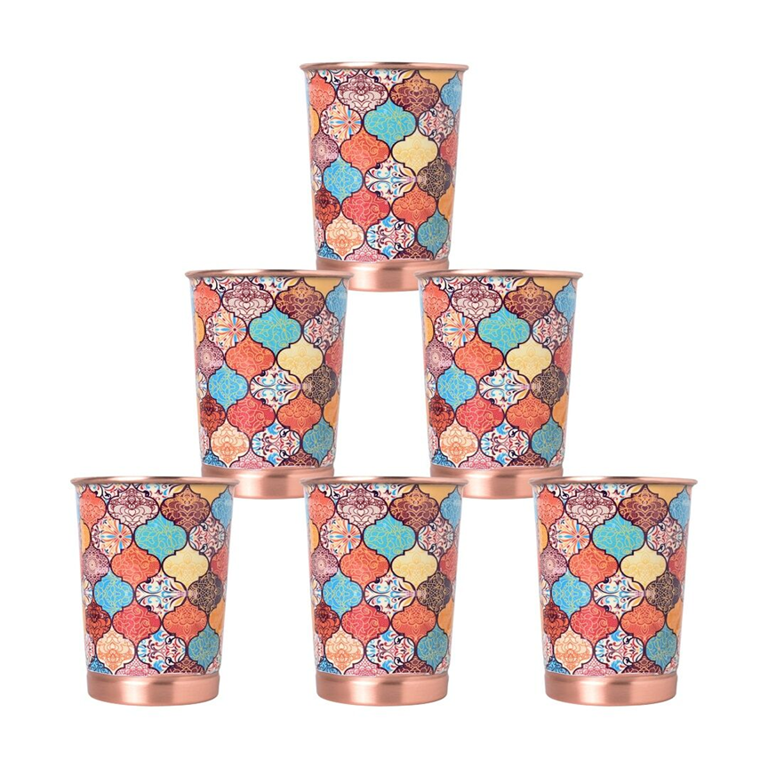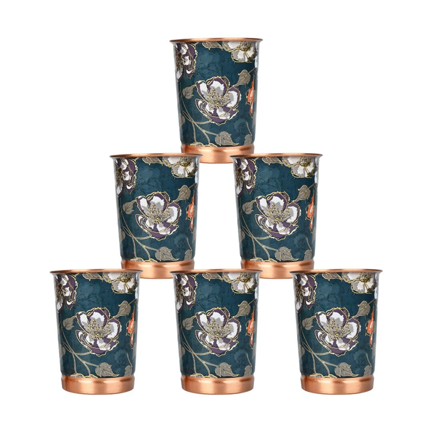 แก้วใส่เครื่องดื่มผนังชั้นเดียวซ้อนได้พิมพ์ลายดอกไม้สุดหรูแก้วน้ำดื่มน้ำแก้วช็อตเล็กแก้วทองแดง