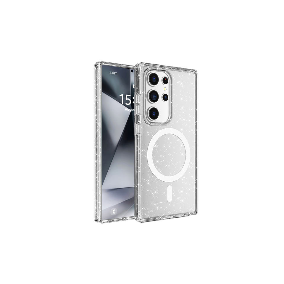 เคสกลิตเตอร์ที่เข้ากันได้กับ MagSafe สุดหรูสำหรับ Samsung Galaxy S25เคสซิลิโคนใสเงางามเป็นพิเศษหรูหรา