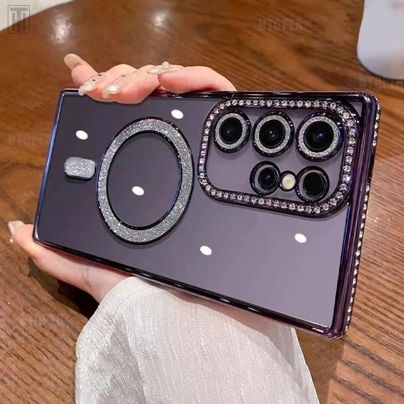 เคสโทรศัพท์มือถือ A55 Samsung, เคส A36 TPU แม่เหล็กมีกลิตเตอร์น้ำหนัก5ก. S25Ultra ใสสำหรับ S24 Samsung