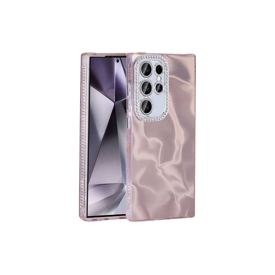 เคสหรูหราสำหรับ Samsung Galaxy S24 Ultra ป้องกันแรงกระแทกด้วย Airbag ดีไซน์ประดับเพชร วัสดุ TPU ซิลิโคนนุ่ม สีชมพู