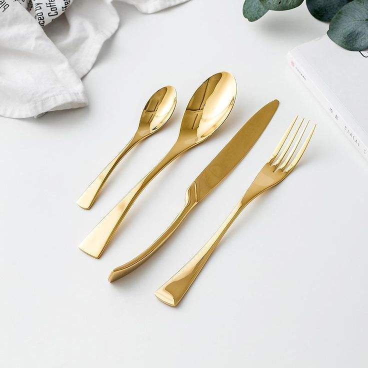ช้อนส้อมโลหะชุบทองหรูหรามีลวดลายตกแต่งเหมาะสำหรับการตั้งค่าโต๊ะอาหารในรูปแบบราชวงศ์