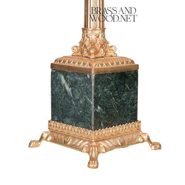 โคมไฟตั้งโต๊ะทองเหลืองสีทองหรูหราพร้อมฐานหินอ่อนและผ้าที่หรูหราเหมาะสำหรับการตกแต่งภายในแบบคลาสสิกและไร้กาลเวลา