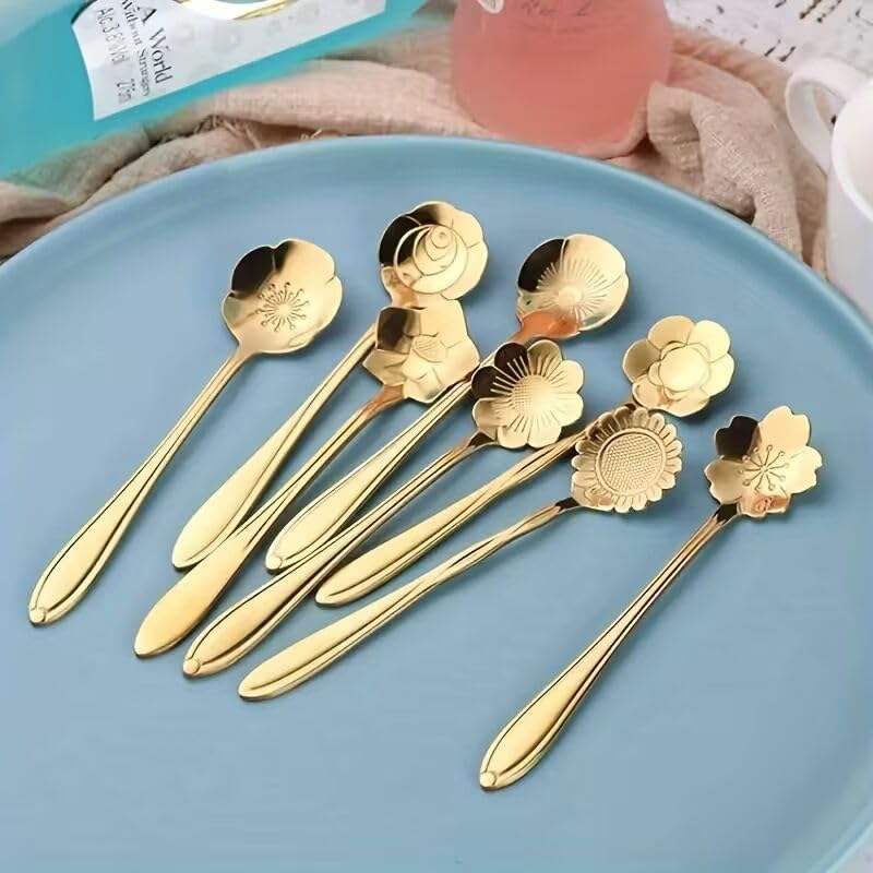 ชุดช้อนทองหรูหรา ชุดช้อนกาแฟสุดหรู ช้อนขนมหวานสไตล์ราชวงศ์ ช้อนสแตนเลสพรีเมียม ชุดช้อนส้อมหรูหรา