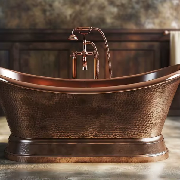 อ่างอาบน้ำทองแดงทำมือสุดหรูสำหรับการออกแบบห้องน้ำที่สง่างาม พร้อมด้วยอ่างอาบน้ำทองแดงสไตล์คลาสสิกที่เป็นเอกลักษณ์