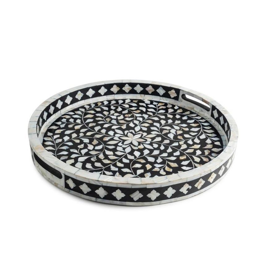ถาดเสิร์ฟทรงกลมฝังมุกและกระดูกแฮนด์เมดสุดหรูสำหรับตกแต่งบ้านทำด้วยมือถาดเสิร์ฟ moplay