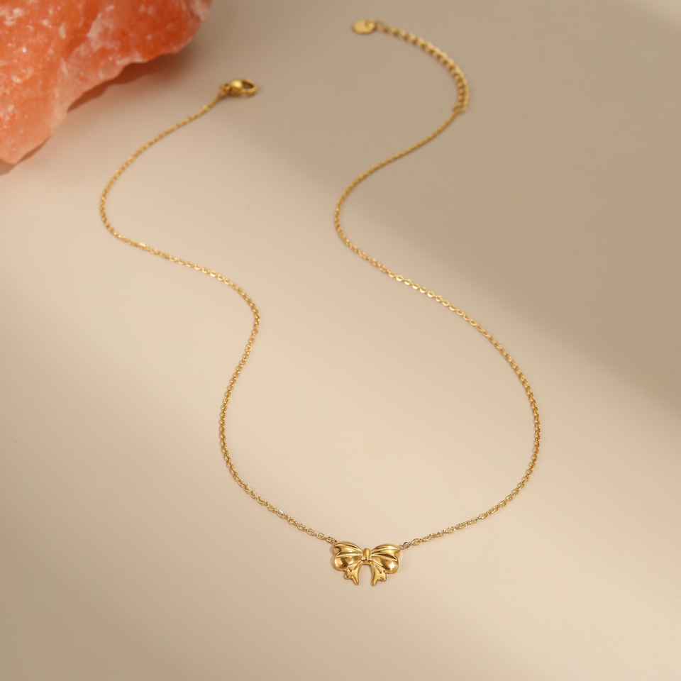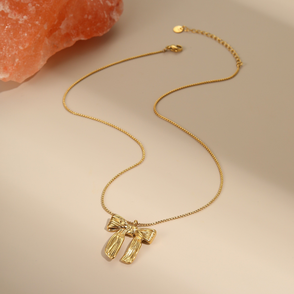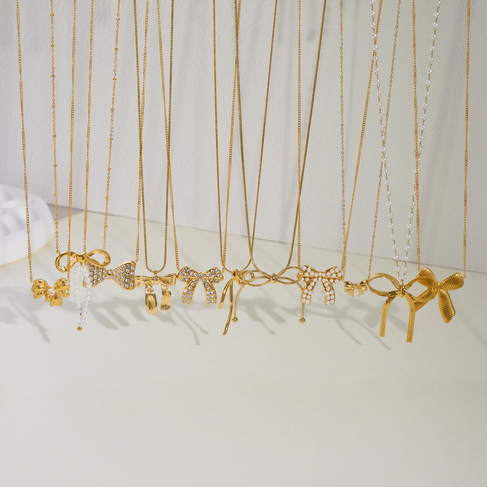 จี้รูปโบว์สแตนเลสสตีลสุดหรูหราทันสมัย สร้อยคออเนกประสงค์ที่มีเอกลักษณ์เฉพาะตัวสำหรับทุกโอกาส
