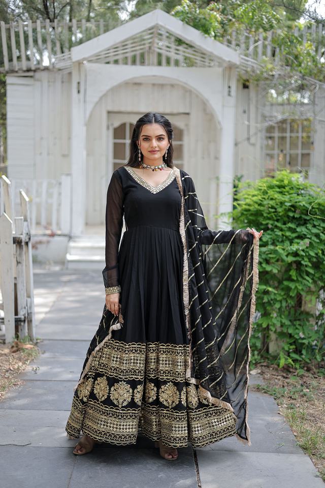 ชุดปักเลื่อมสุดหรูผ้าลูกไม้บานปักเลื่อมสีดำน้ำตาลเข้มชุดผ้าสองชั้น3.5มีขอบ