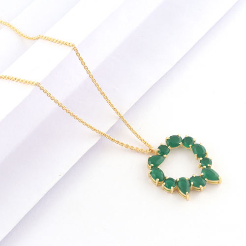 สร้อยคอพลอยสำหรับผู้หญิง ประดับพลอยหลากสี หยกเขียว ดีไซน์เนอร์จี้ทอง 18k ชุบทองเหลือง สายเคเบิล สร้อยคอแฟชั่นสำหรับงานแต่งงาน