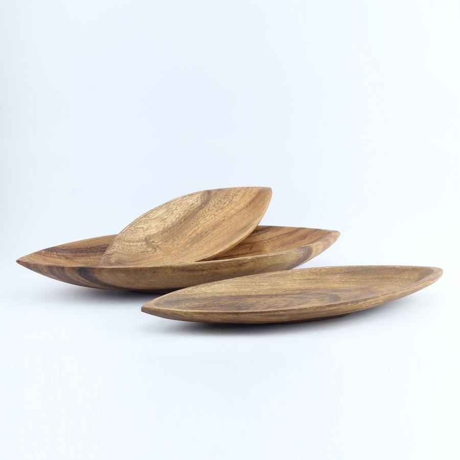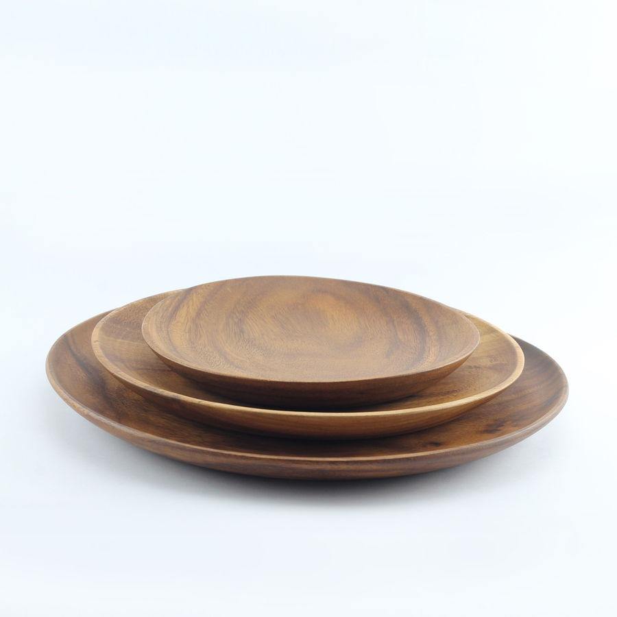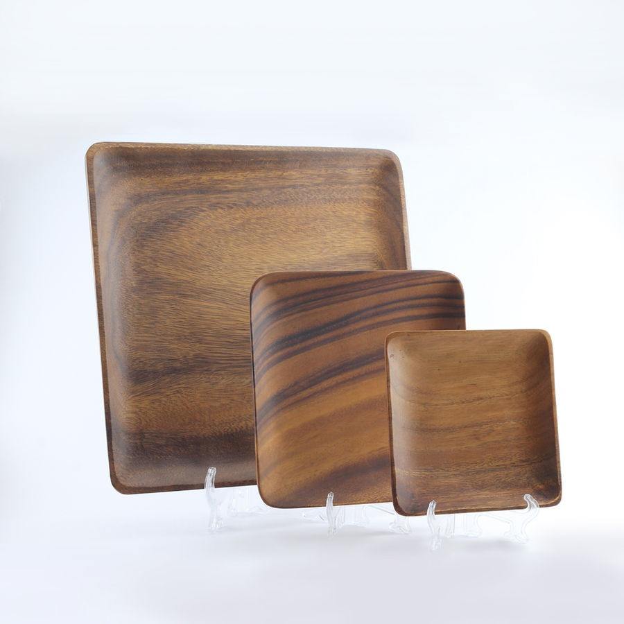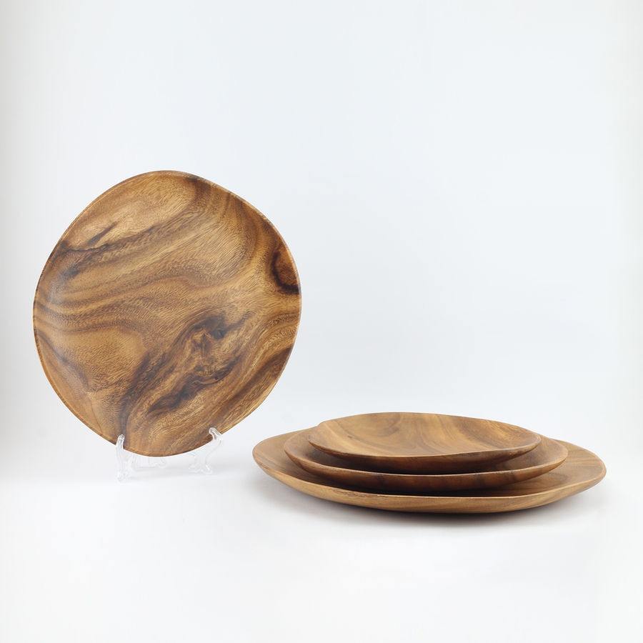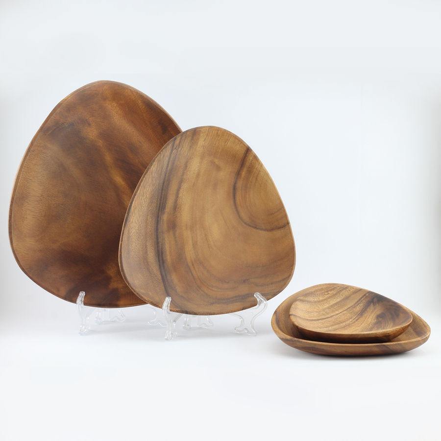 ชุดเครื่องใช้บนโต๊ะอาหารแบบหรูหราทำจากไม้อะคาเซียสำหรับบริการจัดเลี้ยงอาหารจานทำจากไม้แฮนด์เมดจากเวียดนาม