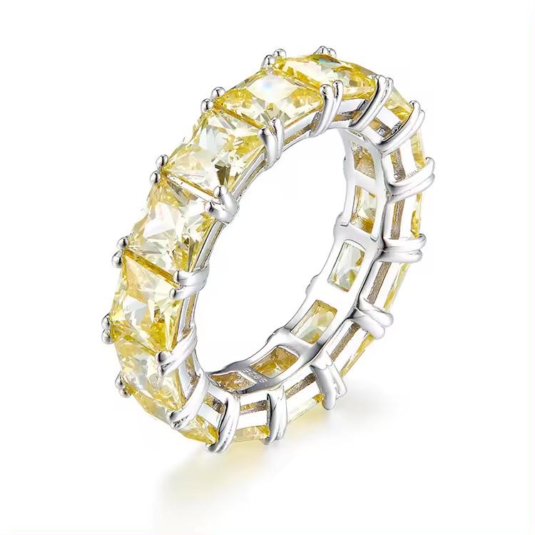 แหวนนิรันดร์ผู้หญิงชุบทองประดับเพชร CZ สีเหลืองเทียม เงินแท้ 925 ดีไซน์หรูหราทันสมัย