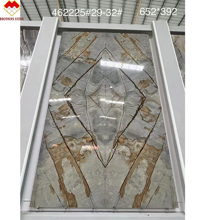 แผ่นหินควอทซ์ไซต์หินธรรมชาติที่ไม่เหมือนใครหรูหราแผ่นหินควอตซ์สีเหลืองสไตล์บราซิล