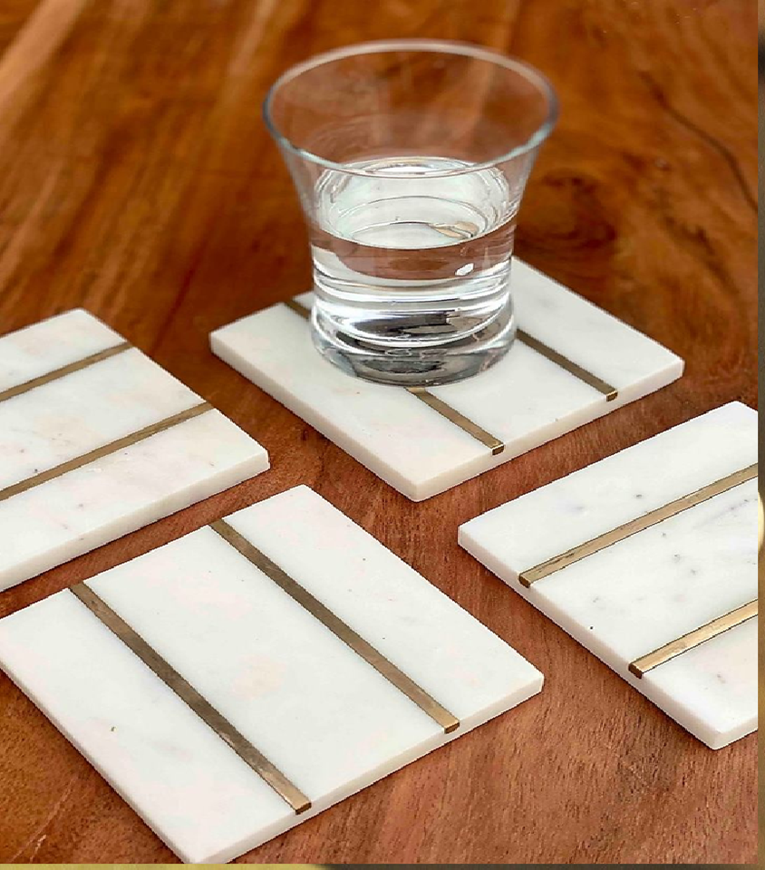 ถาดรองแก้วหินอ่อนและไม้ดีไซน์เนอร์
