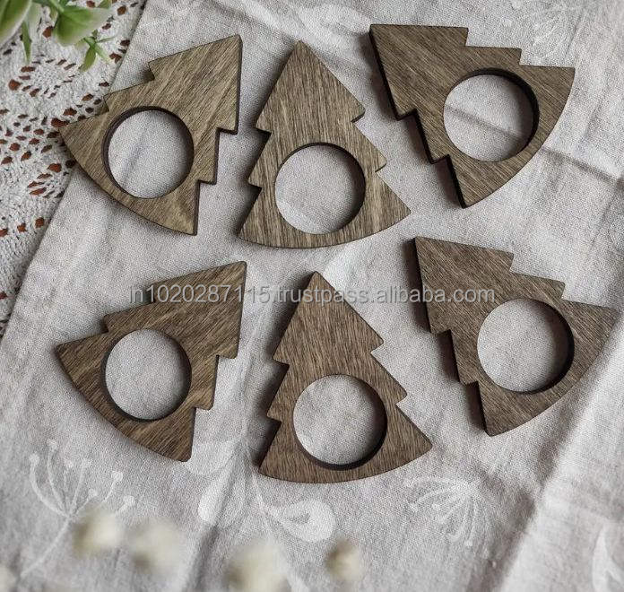 ชุดที่ใส่แหวนผ้าเช็ดปากทำจากไม้หรูหราสำหรับงานเลี้ยงงานแต่งงานหรืองานเลี้ยงวันหยุดเพิ่มความสวยงามในการรับประทานอาหารแนววินเทจแบบเรียบง่าย