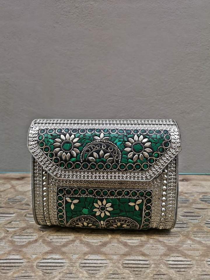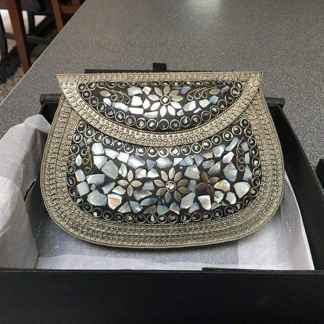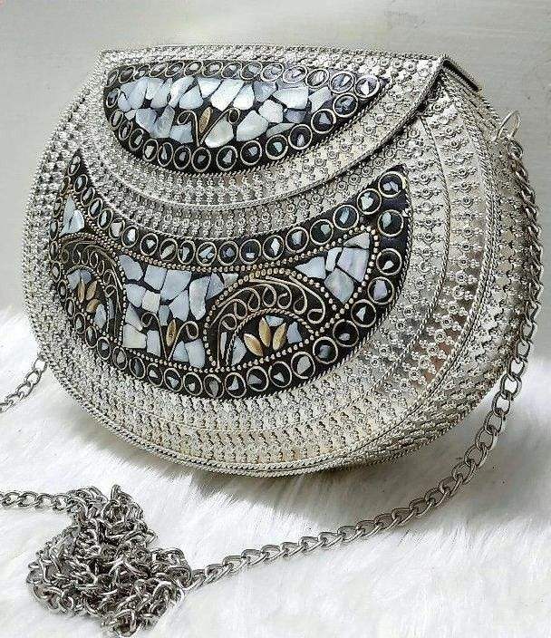 กระเป๋าคลัทช์หรูหราประดับมุกและงานโลหะ ตกแต่งด้วยหินและงานปัก เหมาะสำหรับงานปาร์ตี้สำหรับสุภาพสตรี