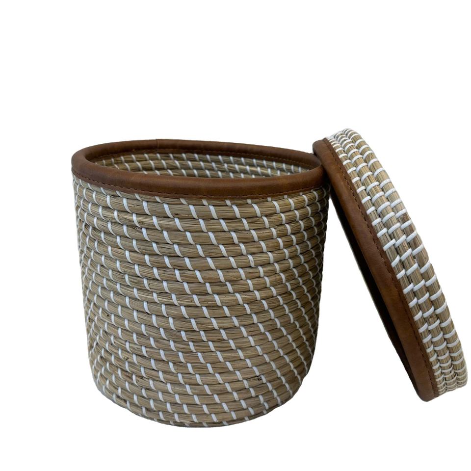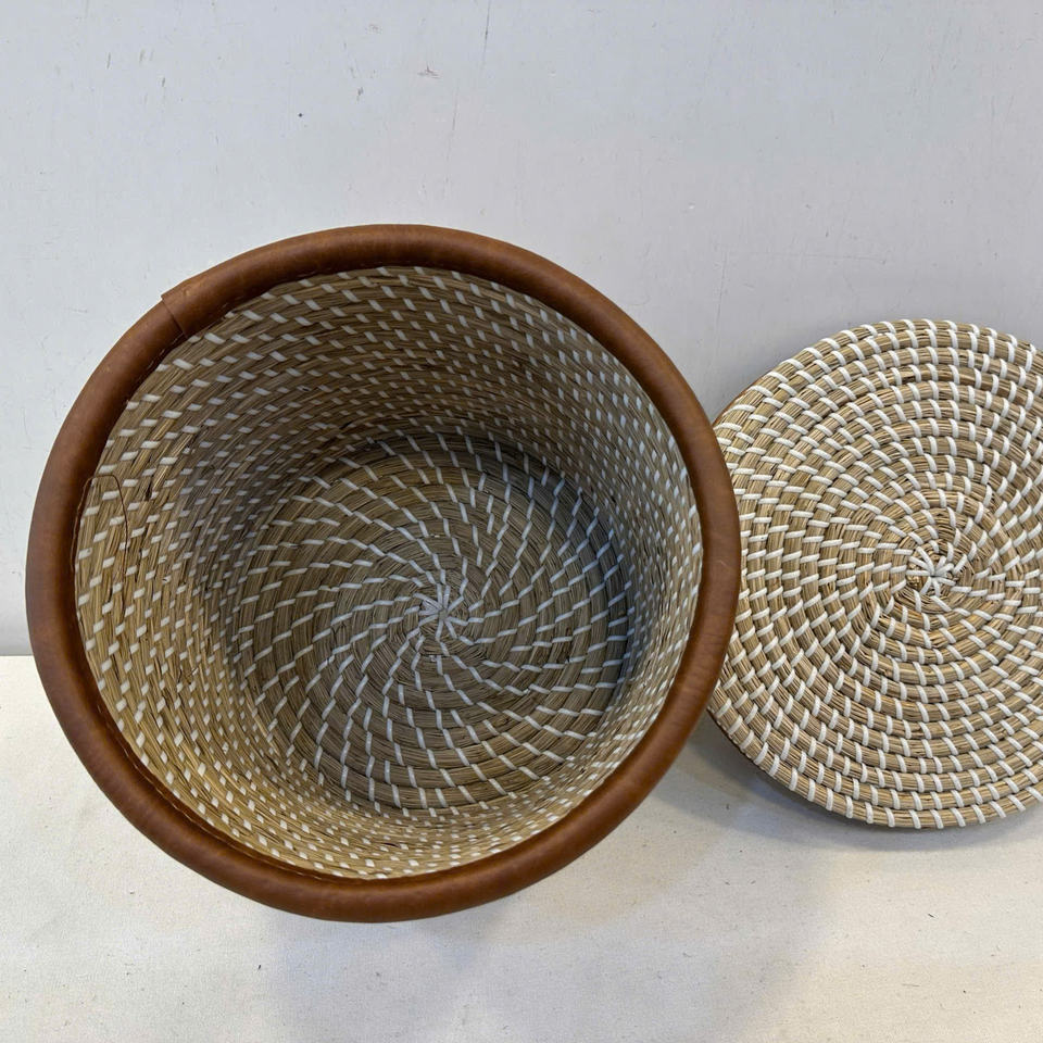 ตะกร้าทรงกลมสานจากหญ้าทะเลสุดหรู ดีไซน์ทันสมัย พร้อมเชือก PP และขอบหนัง ดีไซน์อเนกประสงค์ ความแม่นยำสูง