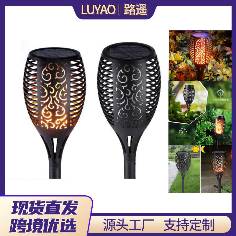 หลอดไฟโซลาร์กลางแจ้ง Luyao แบบเปลวไฟ 12-LED แสงกระพริบสำหรับทางเดินในสวน