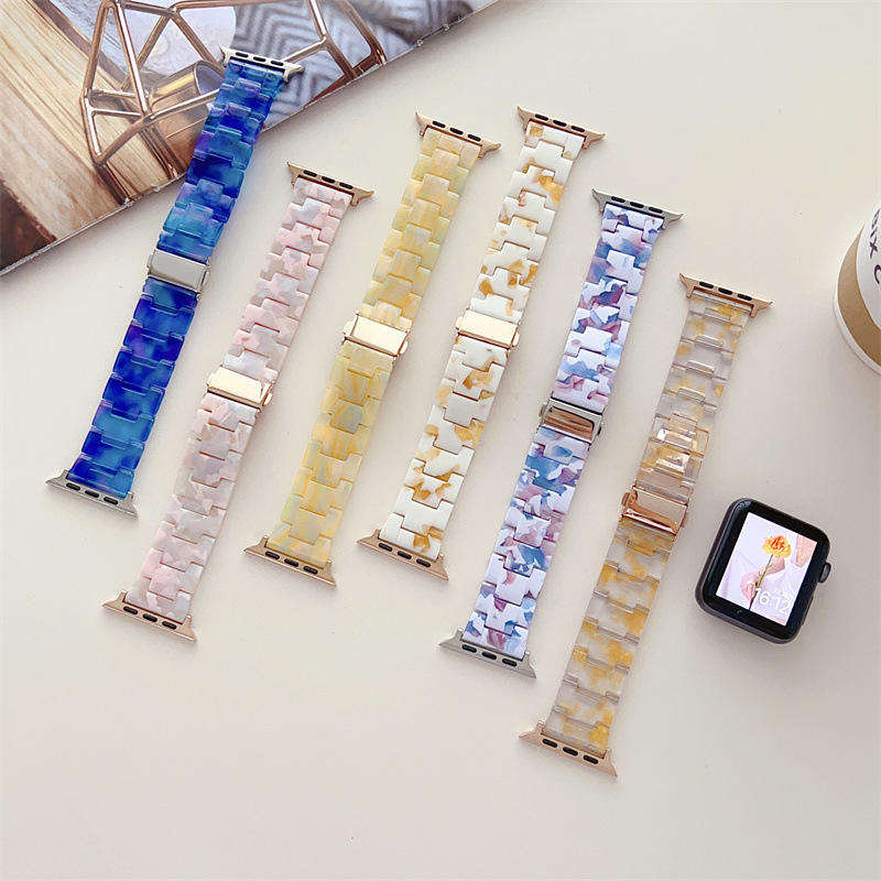 Lwatch Series 38/40/42/44/45มม. สายนาฬิกาสเตนเลสสตีลเรซิ่นอัจฉริยะ