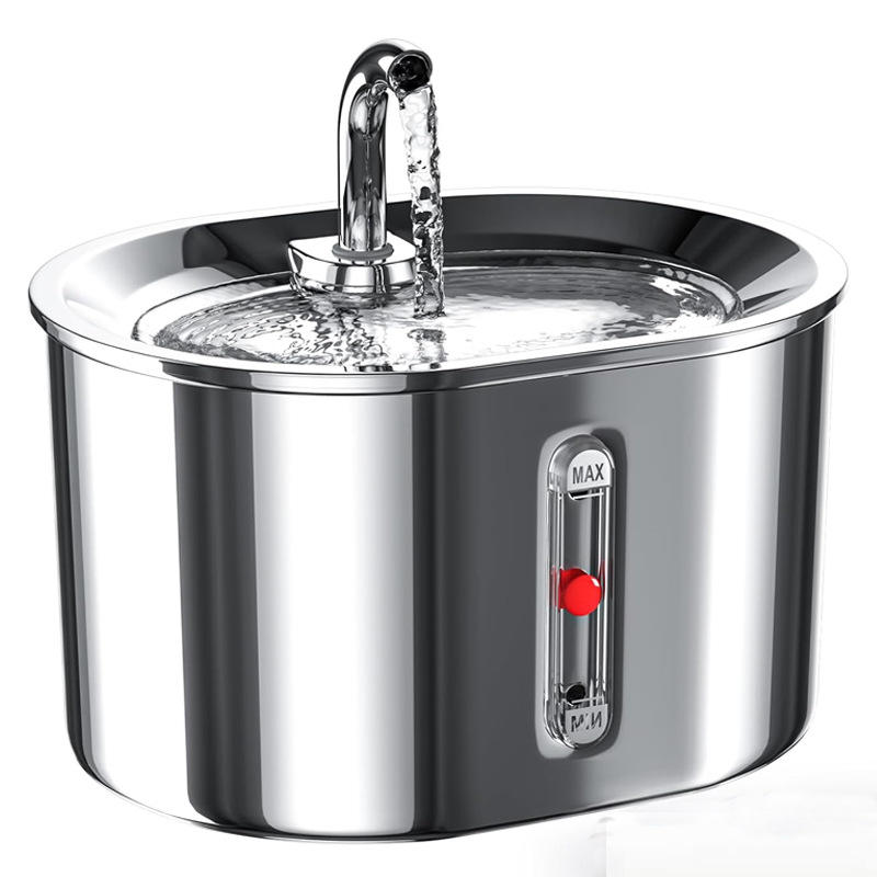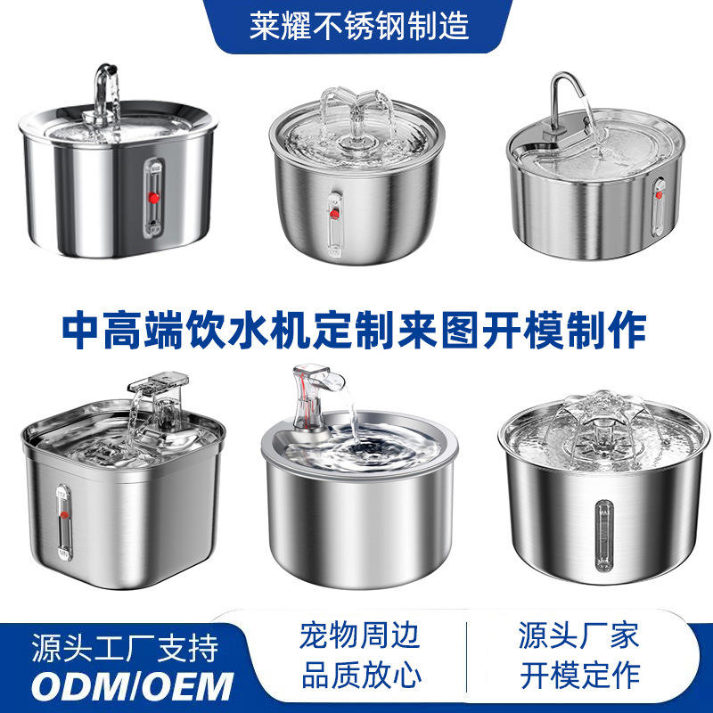 Ly-001 น้ำพุสแตนเลสสำหรับสัตว์เลี้ยง 304 เหล็กกล้าสำหรับสุนัขและแมว น้ำพุดื่มอัตโนมัติแบบตั้งโต๊ะ เครื่องป้อนอาหารไฟฟ้า สีเงิน