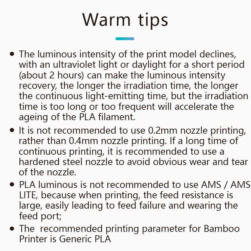 PLA Luminous filamentหมายเลขรุ่น