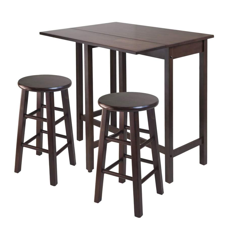 Lynnwood Walnut Drop Leaf Island Table with 2 Square Legs Stool Bar Furniture Set