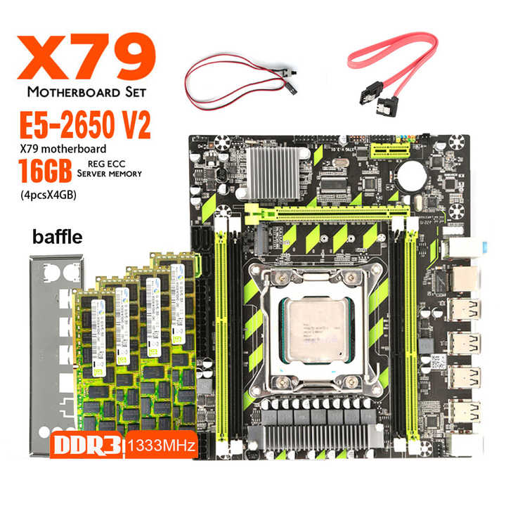ชุดเมนบอร์ด M.2 X79G X79 พร้อมซีพียู LGA2011 คอมโบ Xeon E5 2650 V2 แรม 4 ชิ้น x 4GB = 16GB ECC ของใหม่