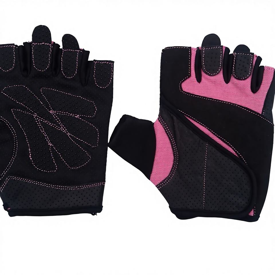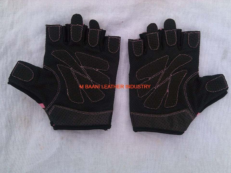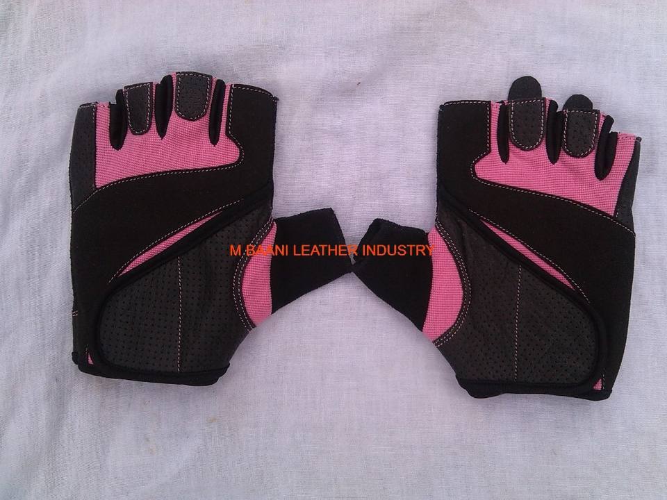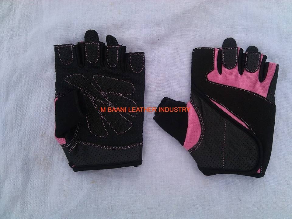 ถุงมือยกน้ำหนักแบบครึ่งนิ้ว M.BAANI สีชมพู ปรับแต่งได้ สำหรับทุกเพศ ผลิตจากผ้า พร้อมสายรัดสำหรับยิมและปั่นจักรยาน