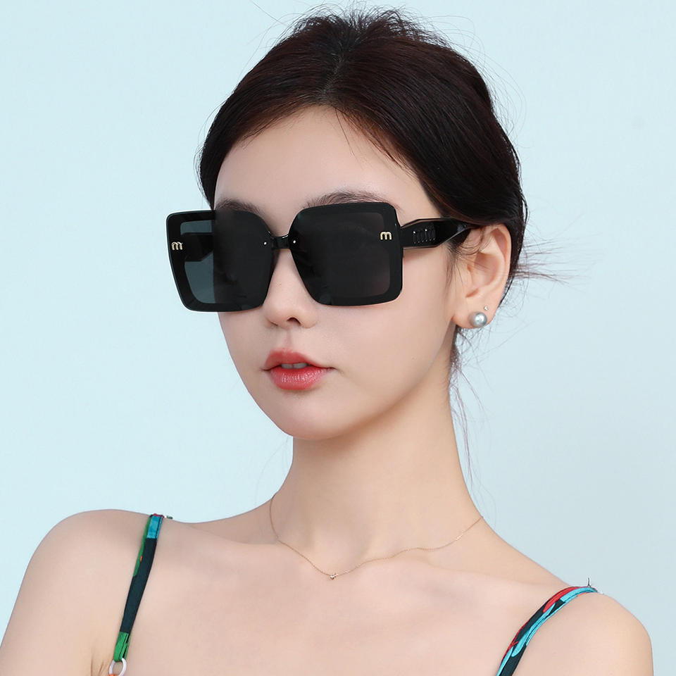 แว่นกันแดดผู้หญิงแบรนด์ M กรอบสี่เหลี่ยมสีดำ UV400 เลนส์โพลาไรซ์ PC แฟชั่นสไตล์สตรีทขับรถป้องกันแสงแดด