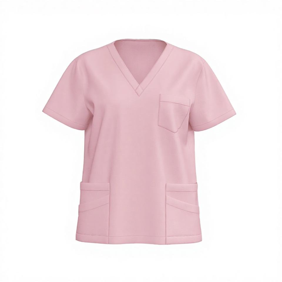 ชุดสครับผู้หญิงคอวีแบบยืดหยุ่น M&F ผ้าทอผสมสแปนเด็กซ์ แขนสั้น ชุดพยาบาลคุณภาพสูง ชุดยูนิฟอร์มโรงพยาบาล ตรวจจับเข็มได้