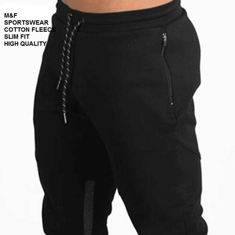 M & F กางเกงกีฬาผู้ชายแบบลำลองทรงสลิมฟิตคุณภาพสูงผ้าฟลีซคอตตอนผ้าฟลีซแบบแบนด้านหน้าและกลางเอวมีบริการ OEM