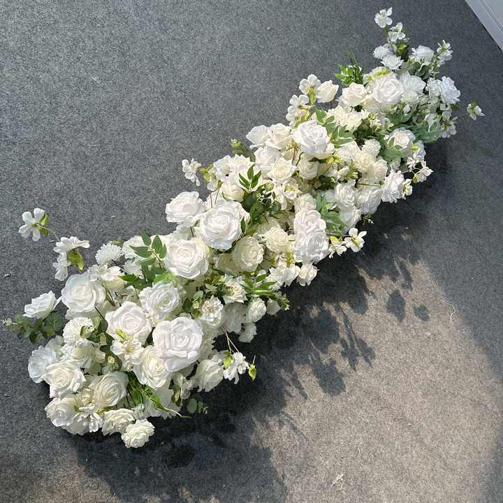 M-FR139 ดีไซน์ใหม่ ผ้าปูทางเดินงานแต่งงาน ดอกไม้สีขาว ผ้าปูโต๊ะลายดอกไม้ ผ้าปูทางเดินดอกกุหลาบผ้าไหม สำหรับตกแต่งงานแต่งงาน