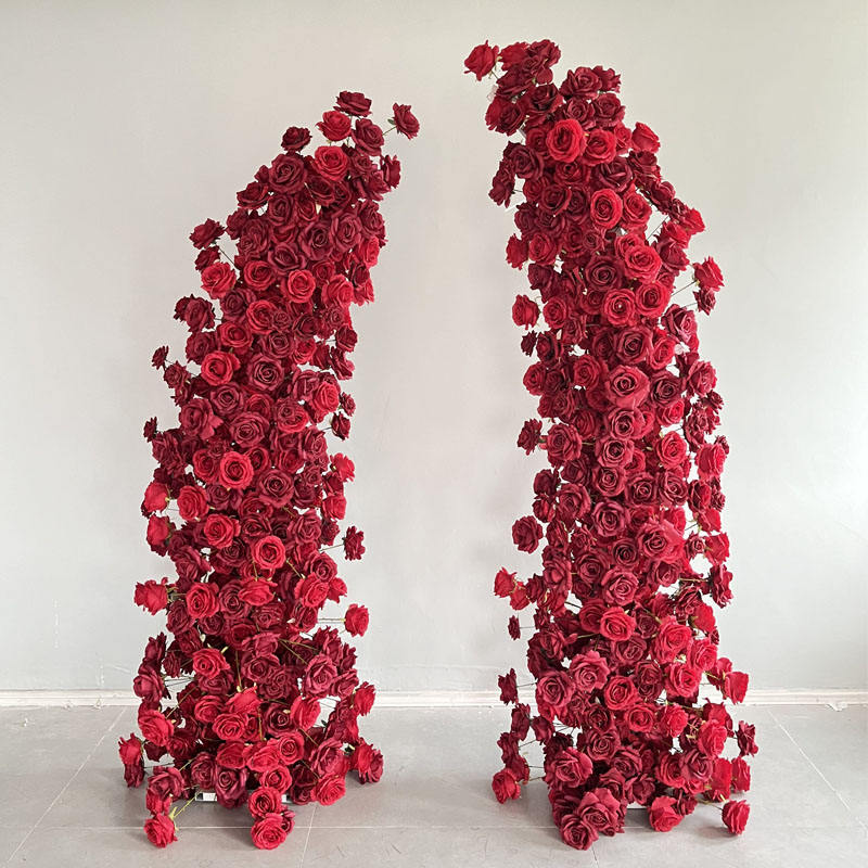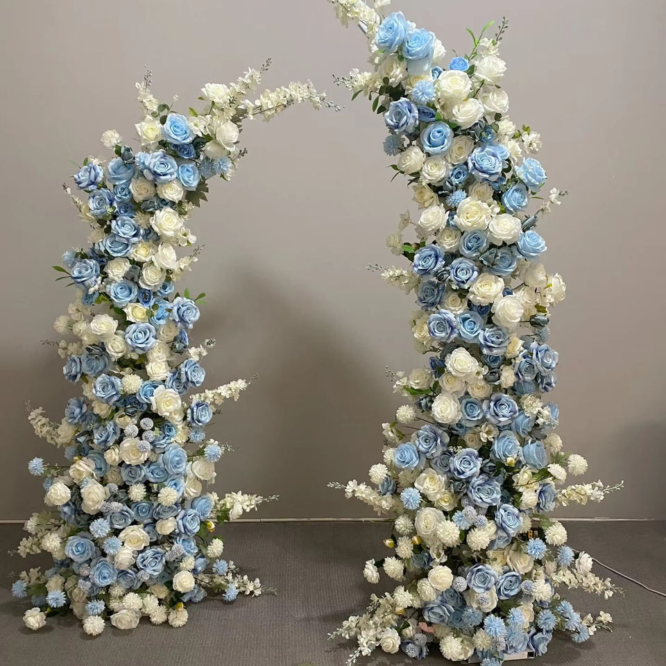 ดอกไม้ประดิษฐ์จาก M-HOA046สีม่วงรูปโค้งที่มีเขาดอกไม้ผ้าไหมซุ้มดอกกุหลาบฮอร์นหรูหราสำหรับตกแต่งงานแต่งงาน