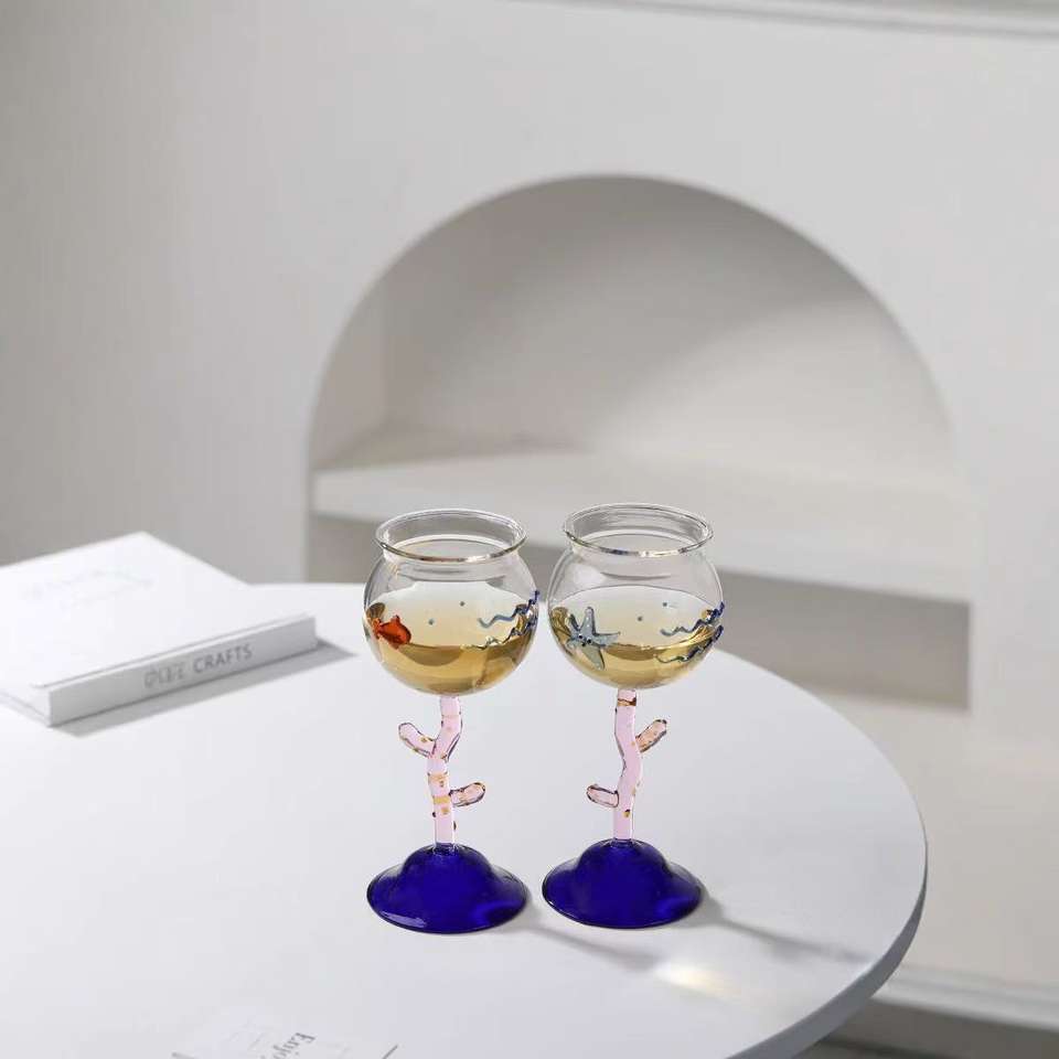แก้วแชมเปญทรง3D รูปปลาทะเลขนาดพกพาแก้วไวน์หลากสีทรงถ้วยไวน์ค๊อกเทลไวน์