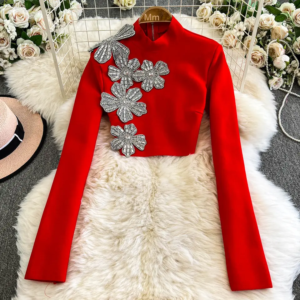 ชุดเดรสแฟชั่นสไตล์ยุโรปและสหรัฐแบบใหม่ชุดกระโปรงสั้นทรงสลิมฟิตคอสูงของผู้หญิงไซส์ M L XL สไตล์ยุโรปและ US