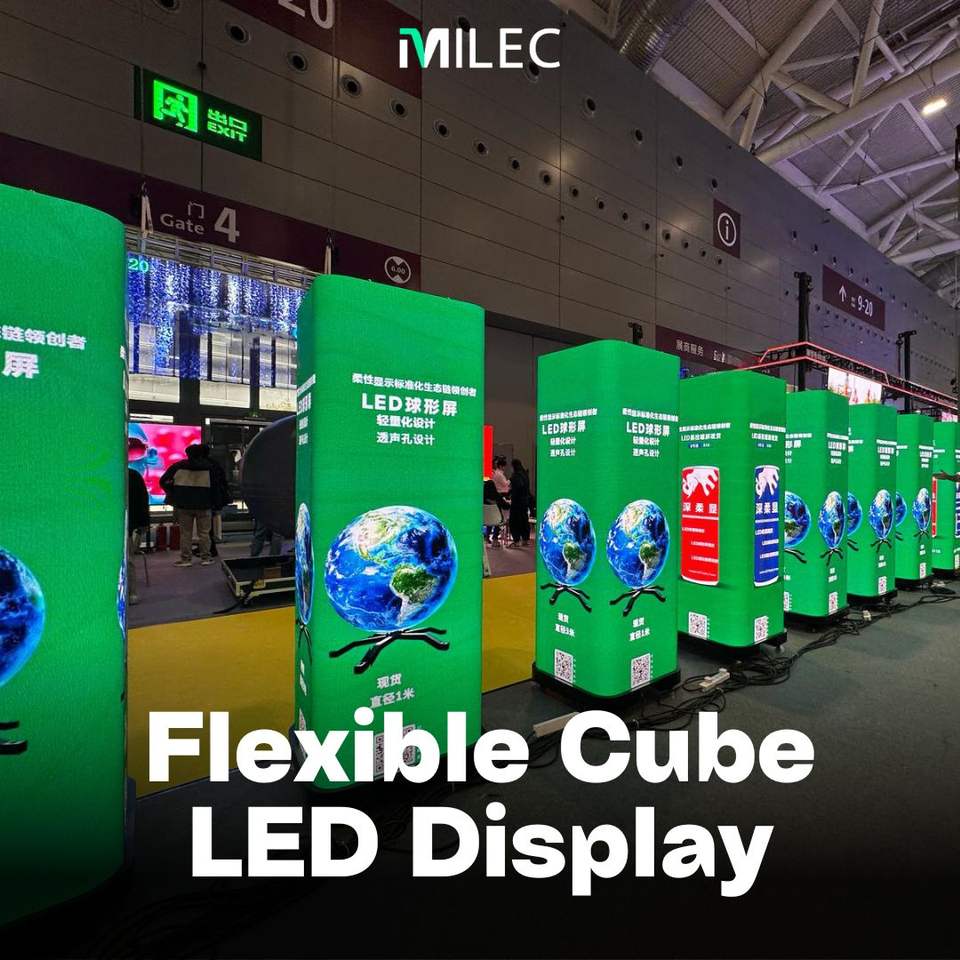 Milec P1.87แสดงผล LED ทรงลูกบาศก์ยืดหยุ่นหน้าจอแยกอัจฉริยะพร้อมจอแสดงผล4ทางจอแสดงผล360องศา
