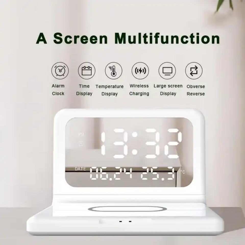 M-Queen 15W 3 in 1 แท่นชาร์จไร้สายอเนกประสงค์แบบกำหนดเอง นาฬิกาปลุก ชาร์จโทรศัพท์ นาฬิกาปลุก แท่นชาร์จไร้สาย
