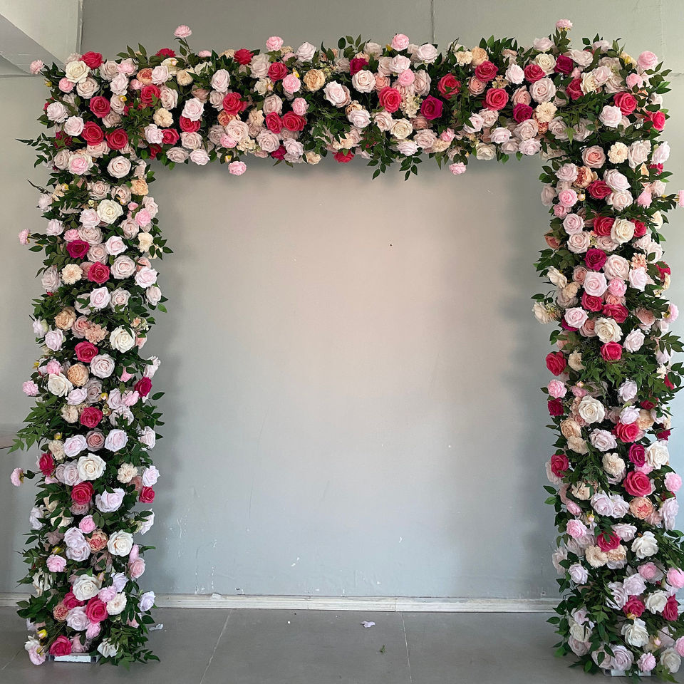 ดอกไม้ซุ้มสี่เหลี่ยมประดิษฐ์จาก M-SFA029ดอกไม้สีขาวหรูหราผ้าซุ้มดอกกุหลาบผ้าไหมทรงสี่เหลี่ยมทำจากผ้าไหมเทียมสำหรับตกแต่งงานแต่งงาน