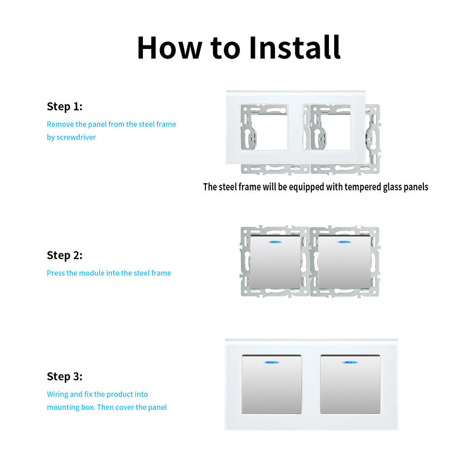 สวิตช์ติดผนังแบบกดเปิด M Series ขนาด 60x60 มม. 2 ช่อง ควบคุมแบบสัมผัส พร้อมแผงกระจกนิรภัย สำหรับกล่องฐานกลม