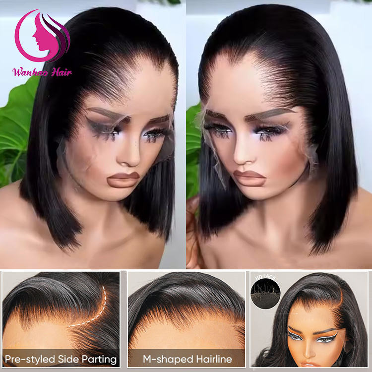 วิกผมบ๊อบสั้นทรง M แบบไร้รอยต่อ ผมแท้เวียดนาม Remy 13x4 พร้อมเชือกผูก HD Lace Front แบบตรง พร้อมไรผมแบบ Lagos Low Hairline