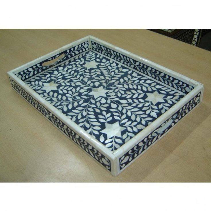 M a Crafts India Fancy Bone Inlay Mother Pearl Food Serving Trays Durable Customized Color & Shape Home Hotel Restaurant Use