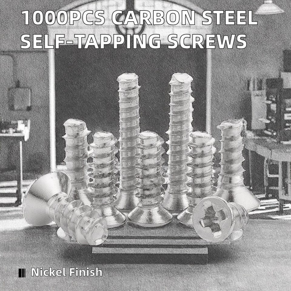 สกรูเกลียวปล่อยหัวฟิลลิปส์เหล็กคาร์บอน M1.2 M1.4 M1.5 M1.7 M1.8 M2 M2.3 M2.6 M3 บรรจุ 1000 ชิ้น/ถุง สำหรับพลาสติก ขนาดเมตริก