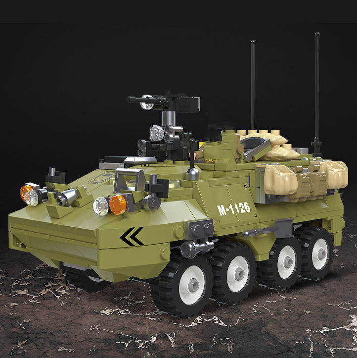 M1126รถทหารราบรถหุ้มเกราะรถทหารพลาสติกขนาดเล็กประกอบชุดของเล่นโมเดลอาคาร