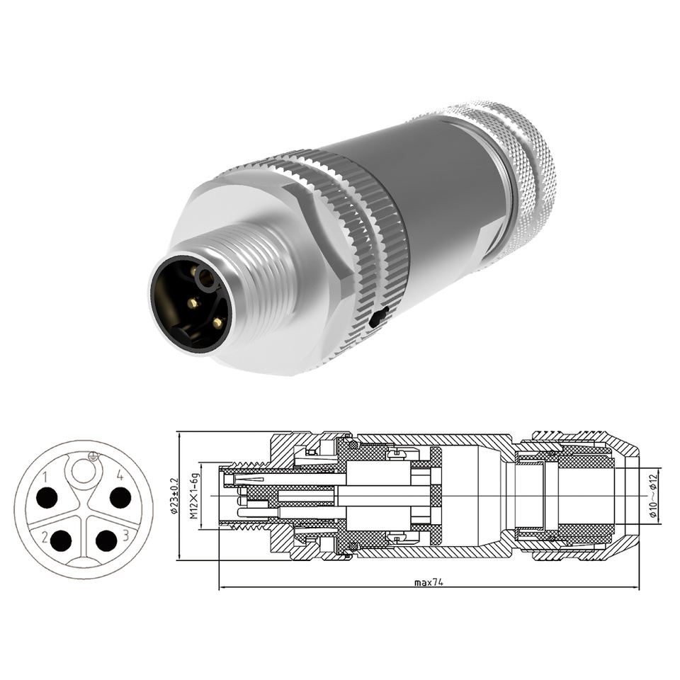 Item name:M12 5 Pin K Code Male Female Metal Plug Screw Connector