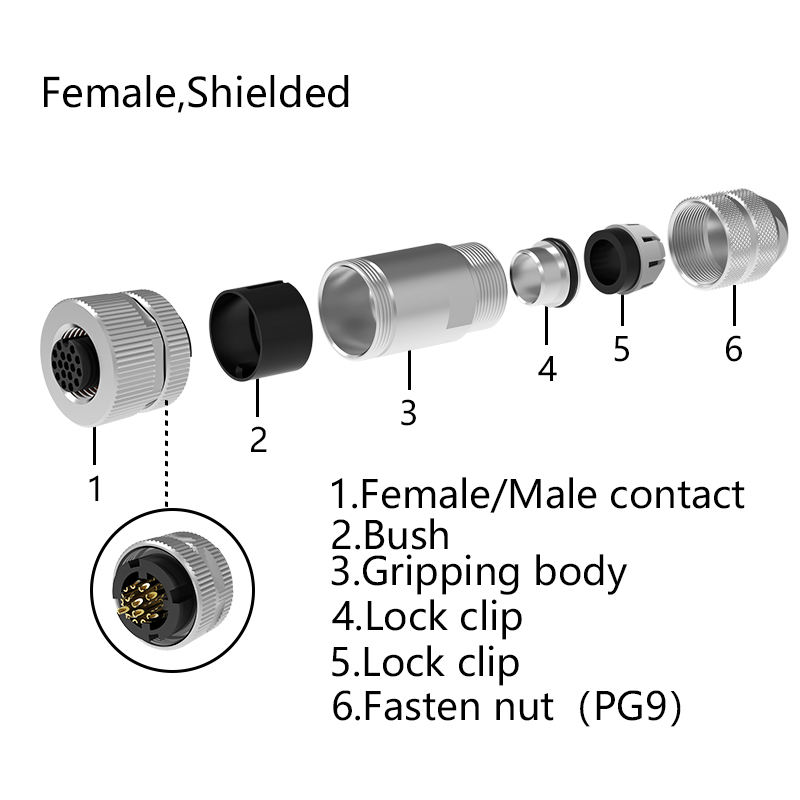 Product name:M12 Connector 17 Pin a Code Field Installation Metal Female Plug