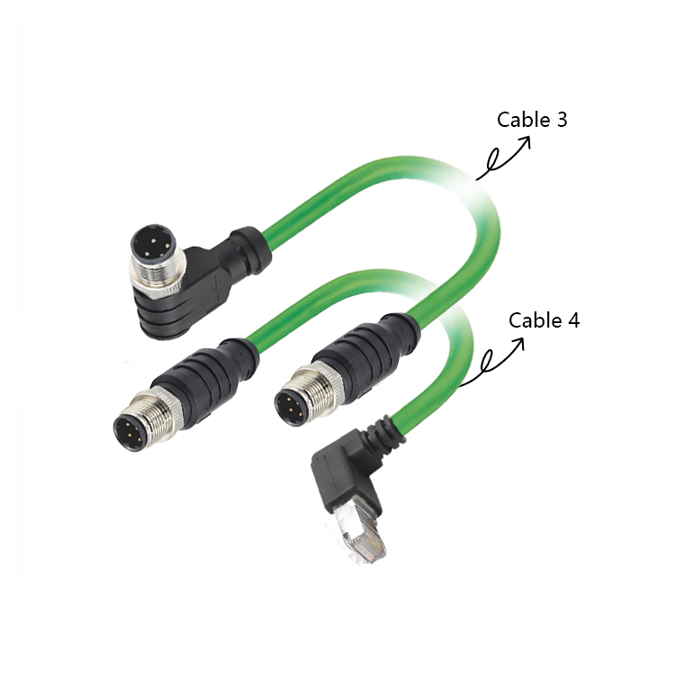 M12 connector 4 pin D code straight angle male to RJ45 plug