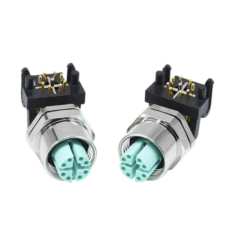 M12 Connector Waterproof X Code Cable Right Angled Female 8 Pin Ip 67 Wire Adapters Panel Mount Connector