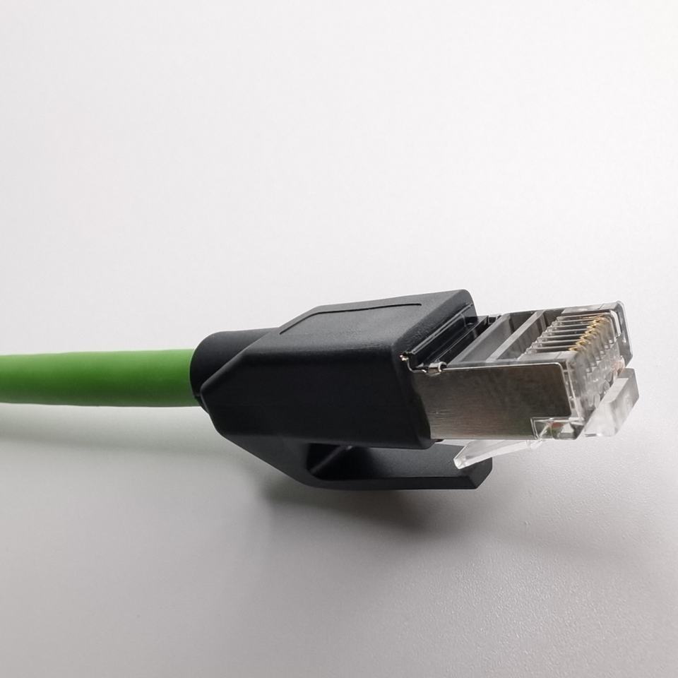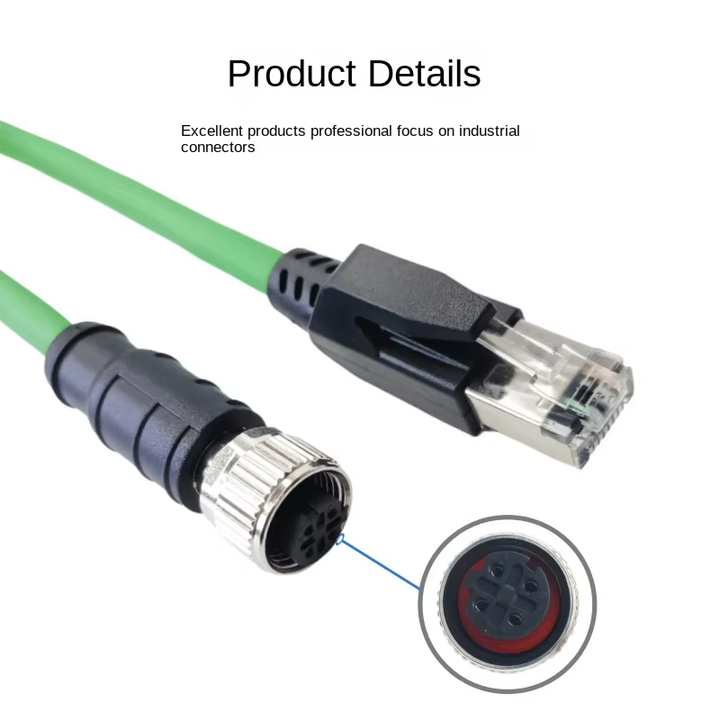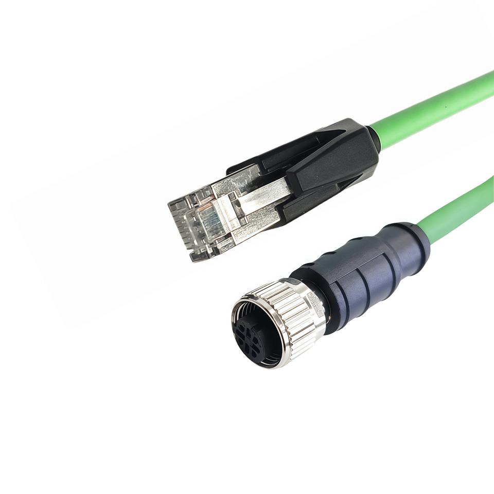 สายเคเบิลอีเธอร์เน็ตอุตสาหกรรม M12 D Code RJ45 Cat6e Gigabit 4 แกน ความยืดหยุ่นสูง ป้องกันสองชั้น EtherCat รองรับ IP67 พร้อมปลอกหุ้ม PVC
