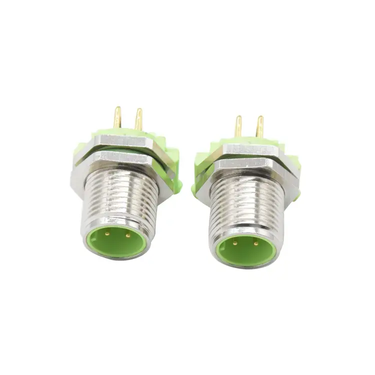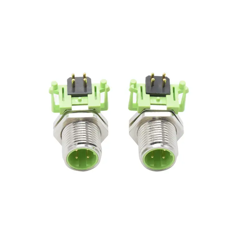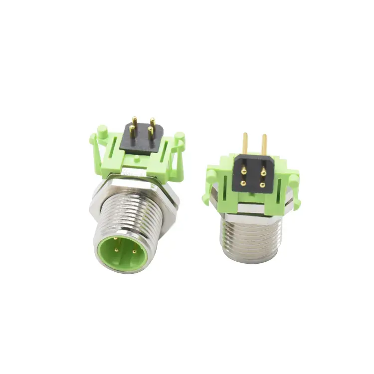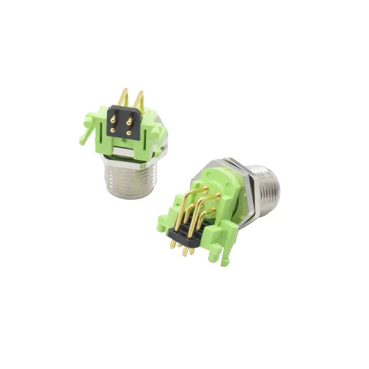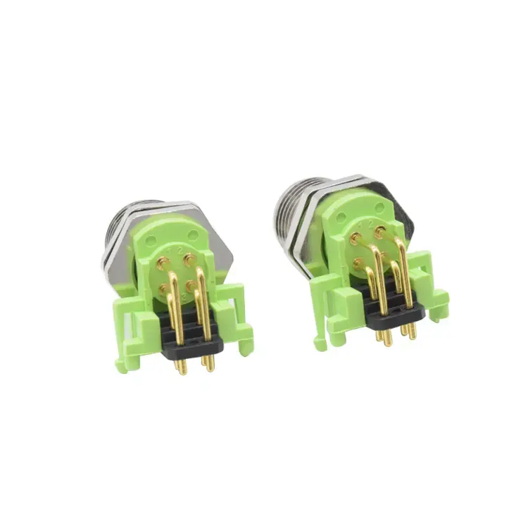 ขั้วต่อ PCB M12ขั้วต่ออิเล็กทรอนิกส์สีเขียว90องศา4Pin ตัวผู้ขั้วต่อ D โค้ดตัวเชื่อมต่อแผง M12