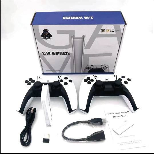 คอนโซลวิดีโอเกม4K M15มีตัวควบคุมไร้สาย2.4G สองตัวปลั๊ก EU รองรับคุณสมบัติรูปแบบเกม FC ในตัว